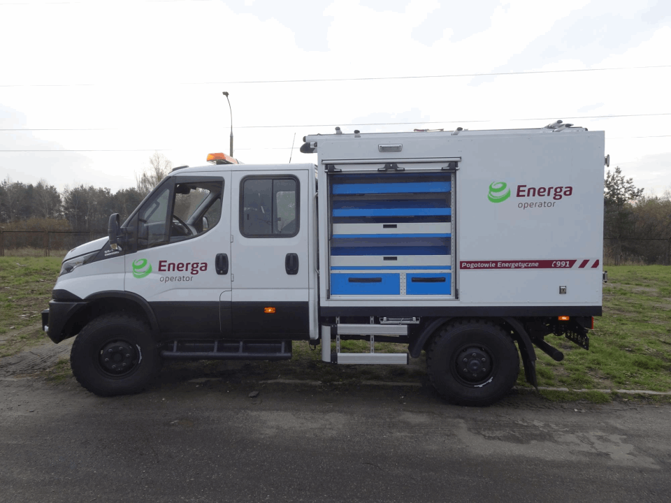 • Specjalistyczne zabudowy dla sektora energetycznego – pojazdy do pracy w trudnych warunkach.
